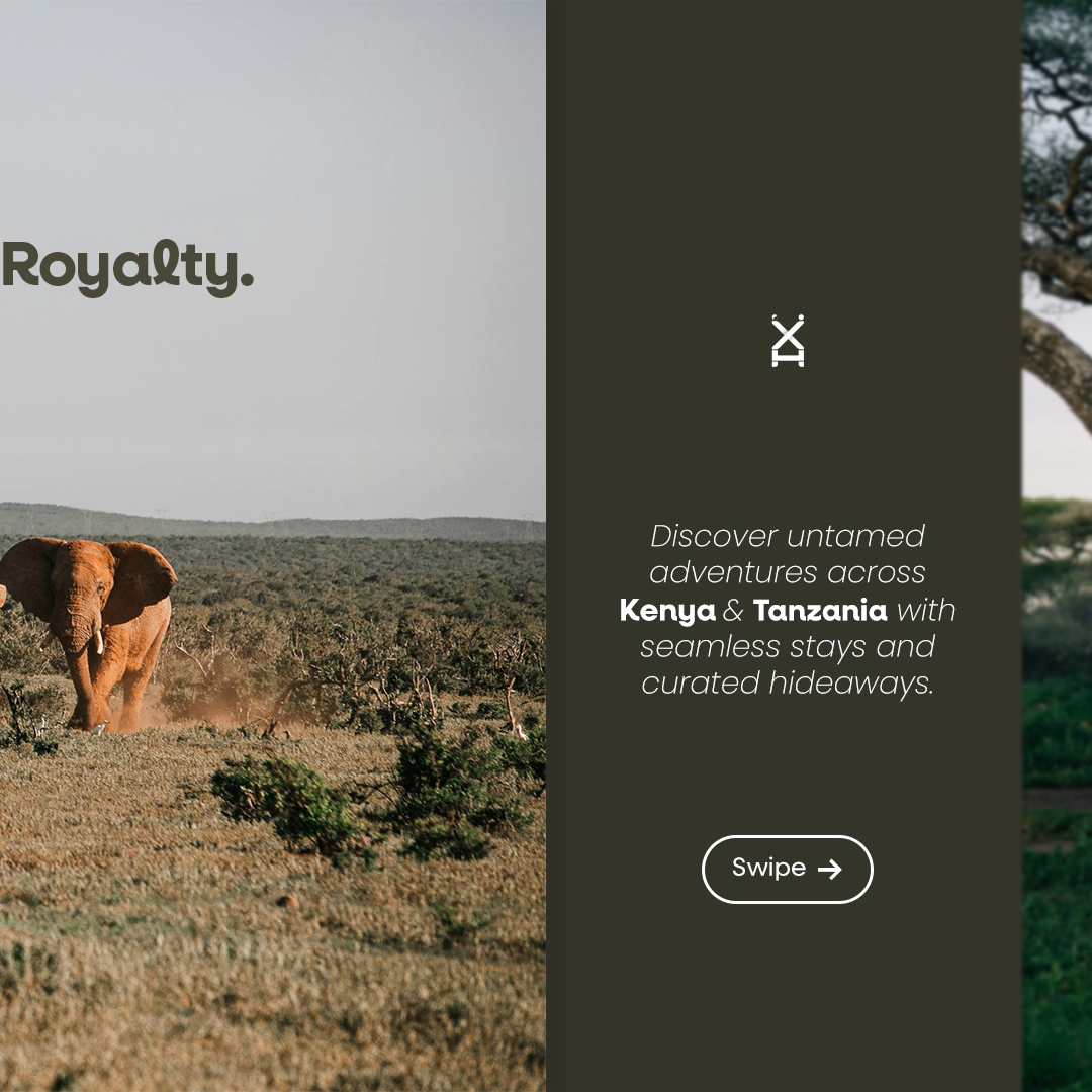 The objective was to create a luxury 3-slide Instagram carousel promoting seamless stays and untamed adventures in Kenya and Tanzania. The aesthetic needed to be "Royal African" — balancing the rawness of the wild with the comfort of high-end travel.